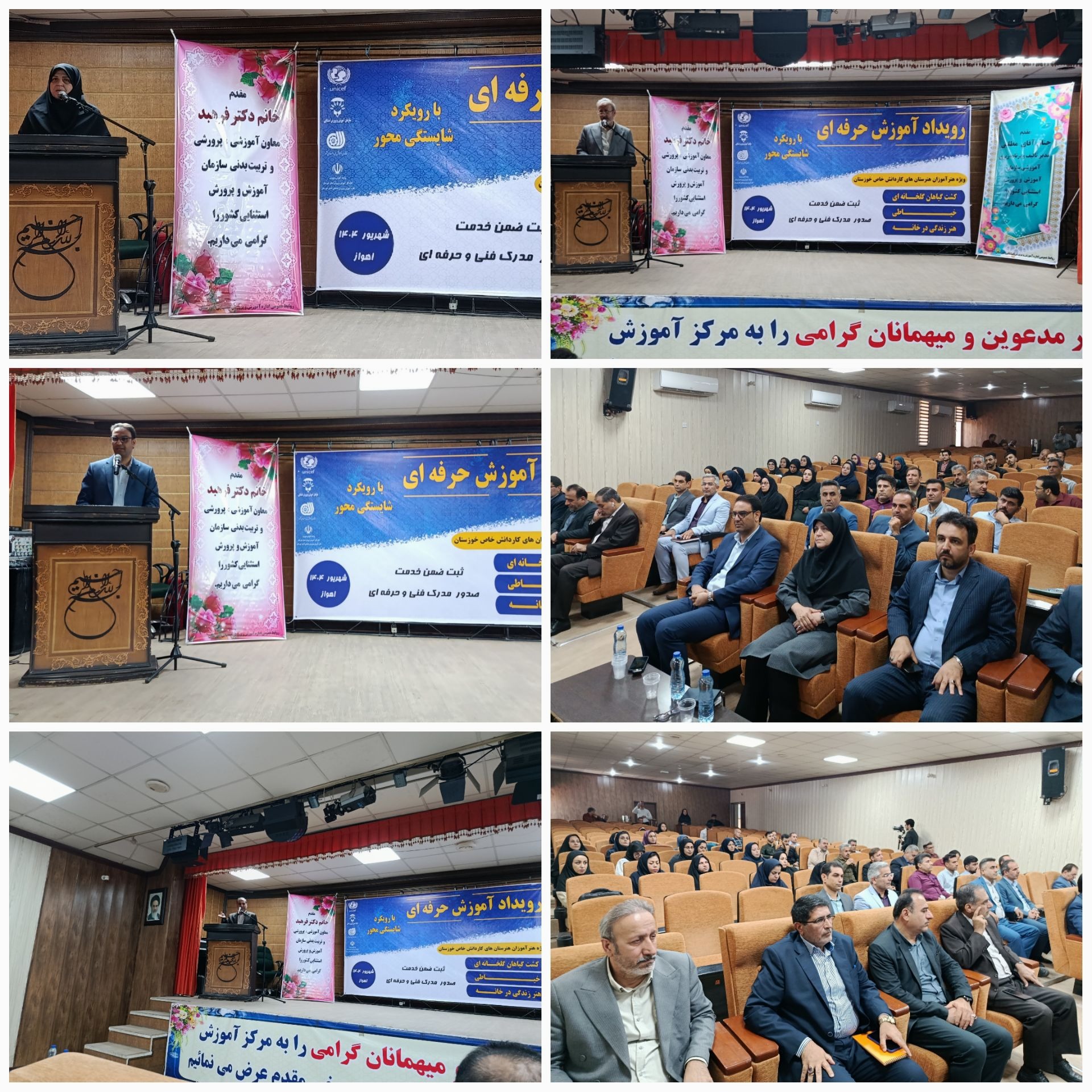به گزارش روابط عمومی امروز شنبه ۱۵ شهریورماه باحضور سرکار خانم دکتر فرهبد معاون آموزشی و پرورشی و تربیت بدنی سازمان آموزش و پرورش استثنایی کشور، دکتر علیفر مدیرکل آموزش و پرورش استان، مهندس قلاوند و مهندس نیسی معاونین اداره کل فنی و حرفه ای استان و دکتر مطلبی مدیر تالیف و برنامه ریزی آموزشی سازمان آموزش و پرورش استثنایی و علی ممبینی ریاست اداره استثنایی، ممبینی مدیر آموزش و پرورش ناحیه ۲ اهواز و جمعی از مسئولین و همکاران و هنر آموزان افتتاحیه رویداد آموزش حرفه ای برگزار گردید.
