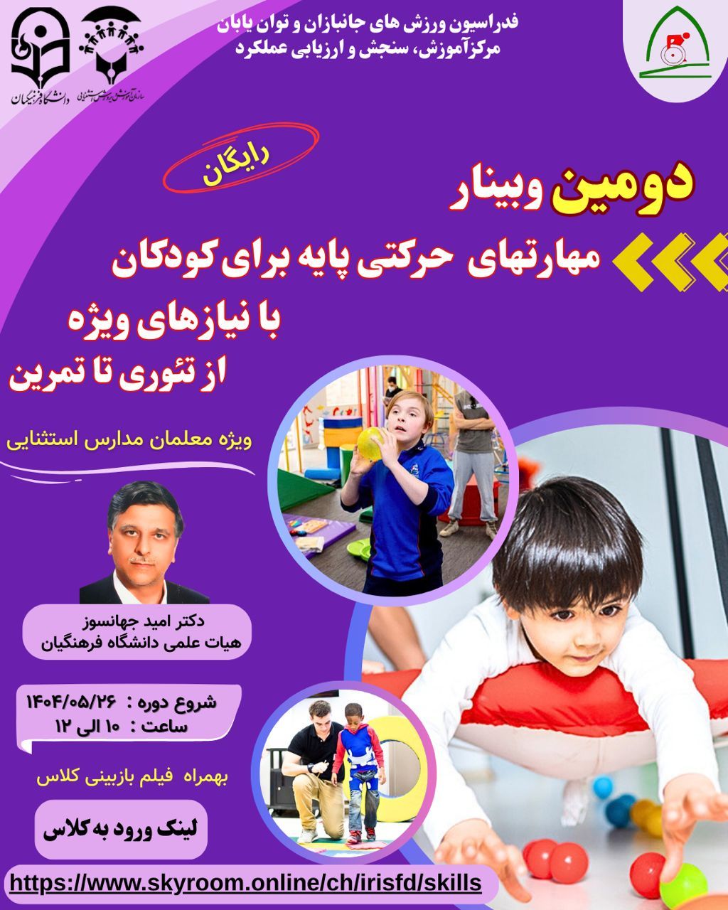 این جلسه با حضور استاد محترم دکتر امید جهانسوز و با استقبال معلمان از سراسر کشور همراه بود. در این وبینار، مباحثی همچون: - اهمیت رشد و توسعه مهارتهای حرکتی پایه در کودکان با نیازهای ویژه، - راهکارهای عملی برای تقویت مهارتهایی نظیر دویدن، پریدن، پرتاب و دریافت، - نقش تمرینات ساختارمند و بازیمحور در ایجاد انگیزه و افزایش مشارکت دانشآموزان، مورد بحث قرار گرفت.