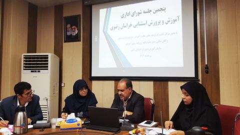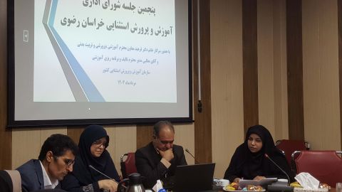 به گزارش روابط عمومی اداره آموزش و پرورش استثنایی خراسان رضوی، رضا کریمی افین رییس ادار آموزش و پرورش استثنایی خراسان رضوی در پنجمین جلسه شورای اداری آموزش و پرورش استثنایی که با حضور مژگان فرهبد معاون آموزشی، تربیت بدنی و پرورشی، مطلبی مدیر مدیر تالیف و برنامه ریزی آموزشی سازمان آموزش و پرورش استثنایی کشور و اعضای ستادی اداره آموزش و پرورش استثنایی خراسان رضوی در مجتمع آموزشی، فرهنگی و توان بخشی امام رضا علیه السلام برگزار شد به ارائه گزارشی از اقدامات صورت گرفته در پروژه مهر امسال پرداخت و گفت: پروژه مهر امسال در کارگروه های تعمیر و تجهیز فضای آموزشی، پرورشی و ورزشی، کارگروه برنامه ریزی و ساماندهی نیروی انسانی، کارگروه توسعه کمی و کیفی تعلیم و تربیت کودکان زیر هفت سال، کارگروه کیفیت بخشی آموزشی و ثبت نام دوره ابتدایی و متوسطه، کارگروه نظارت و ارزیابی، کارگروه کتاب رسانی، کارگروه اطلاع رسانی و رسانه، کارگروه کیفیت بخشی تربیت بدنی و پرورشی و کارگروه احراز و تعیین صلاحیت پروژه مهر فعال است